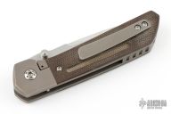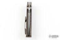 This Mula bolster lock by Enrique Pena is a TAD Gear edition, it features a hand rub satin finished drop point blade with swedge, notched thumbrest and dual thumbstuds. The handle has a tumbled titanium frame with green canvas micarta scales, tumbled titanium backspacer, tip up tumbled titanium clip. Includes original TAD box. Nice detent, lockup and blade seating. Has some light scuffs and scratches, otherwise good condition.