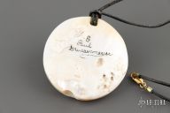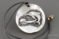 Carved Dolphin Pendant on pearl slab, with necklace. 2.125"x2". Excellent condition. Comes with a soft and leather pouch.