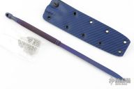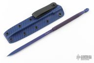 The Devil Dart from Pat Crawford is an anodized titanium sleeve dagger. It is designed and refined after seeing the OSS sleeve dagger from World War II. The blade is triangle shaped for strength and easy penetration. The handle is knurled for a sure grip. Each dart is individually hand ground and bead blasted for the highest quality. .360 diameter. Comes with a kydex sheath. New from maker!