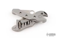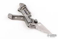 By releasing the pivot, the screwdriver and knife portion of the tool can separate from the crescent wrench allowing both tools to be used independently and/or simultaneously. The knife blade is 440C steel. A pocket clip & a black nylon sheath are included for easy carry.