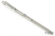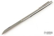 Hand made from stainless steel. Has a pinch locking type mechanism. Separate the handle with your fingers to close.