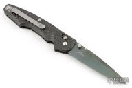 This Benchmade Osborne 770 features a black stonewash finished drop point blade. The handle has an carbon fiber frame with a stainless steel pocket clip. Excellent Condition. Comes with a Benchmade box(Not Original).