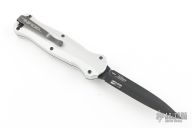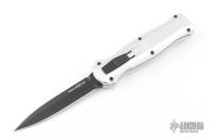 "Introducing an OTF like none-other.. The new Infidel® is rapidly making believers out of many a skeptic. Built for strength and reliability the patent pending double-action mechanics get it done over the long haul. Grab on and you will find the handle grip rock-solid with its patented machined in Presidio® style bi-directional tread pattern, and overall generous sizing for gloved hands. Intuitively pressure the release-slide forward and its spear-point edged steel fires and locks up with a unique three-point retention system with amazingly negligible blade play. Reverse the process and the blade retracts in a rapid blur of motion. The Benchmade Infidel is a special operator’s fantasy come true." Black coated blade. Limited Edition #1782. Excellent condition. Comes with original box, papers and coin.