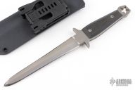 This knife has a double edged blade, .255"" blade stock and .915"" blade depth, full tang construction. The handle has black G-10 scales. Comes with a kydex sheath with TekLok and a nylon zippered case. Has some light scratches, on the blade. Otherwise excellent condition.