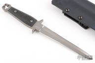 This FS Dagger is clearly an homage to the Fairbairn Sykes dagger of WWII but reconfigured for modern day kit load constraints. The blade and handle have both been shortened to fit better on Tac vests and MOLLE compatible carry systems with minimal footprint. MKTs Helical grind is used here again to give the center keel of the blade nearly full thickness to the tip of the knife. This coupled with a full tang construction delivers a compact adaptation of the historical FS Dagger made to overcome all the shortcomings of the original...
