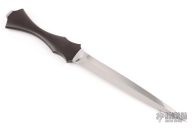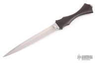 This Model M-12 by Mike O'Brien features a hand rub satin finished double edged blade sanded to 1000 grit, .141" blade stock and .783" blade depth, mortised tang construction. The handle has a satin finished stainless steel guard and but screw with an ebony wood grip. Comes with a Bill's zippered case. Excellent condition.