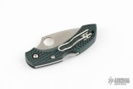 This Dragonfly II by Spyderco features a satin finished blade with thumbhole and notched thumbrest. The handle has green FRN scales, stainless steel backspacer, and a tip up clip, left or right reversible. Has a couple light scuffs otherwise the knife is in Excellent condition.