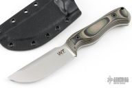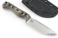 This Nomad Bushcrafter Sabre Grind by Work Tuff Gear features a satin finished Bohler K239 blade with .189" blade stock and 1.159" blade depth, full tang construction. The handle has textured jungle camo G-10 scales, exposed pommel and lanyard hole. Comes with box, papers, and  Kydex sheath. New from maker! 09/2024