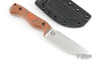 This Nomad Bushcrafter Sabre Grind by Work Tuff Gear features a satin finished Bohler K239 blade with .189" blade stock and 1.159" blade depth, full tang construction. The handle has textured hunter orange gator grip G-10 scales, exposed pommel and lanyard hole. Comes with box, papers, and  Kydex sheath. New from maker! 09/2024
