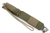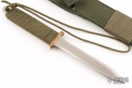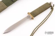 This SF-4 by EK Knives features a satin finished double edged blade with .147" blade stock and 1" blade depth, full tang construction. The handle has a brass guard and green paracord wrapped handle. Comes with original nylon sheath and a zippered case. Excellent condition.