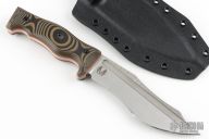 This Little Evil Fighter by Work Tuff Gear features a rugged finished K329 Steel blade with .189" blade stock and 1.568" blade depth, full tang construction with tiger camo G-10 scales and orange liners. Comes with original box, sheath and extras. 09/2024 2nd Production. New from maker!