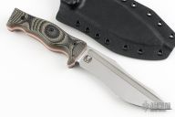 This Little Evil Fighter by Work Tuff Gear features a satin finished K329 Steel blade with .189" blade stock and 1.568" blade depth, full tang construction with textured jungle camo G-10 scales and orange liners. Comes with original box, sheath and extras. 09/2024 2nd Production. New from maker!