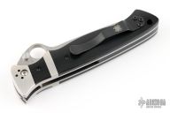 This Vallotton Sub-Hilt by Spyderco features a satin finished blade with a thumbhole, dual thumbstuds, and notched thumbrest. The handle has stainless steel bolsters, black G-10 scales, stainless steel liners, black G-10 backspacer, and 4-way reversible black stainless steel clip. Nice detent, lockup and blade seating. Comes with original box and papers. Excellent condition.