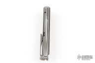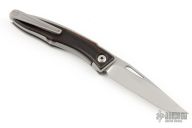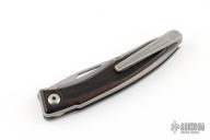 This Mnandi by Chris Reeve Knives has a S45VN satin finished blade with notched thumbrest and nail nick. The handle has a bead blasted and satin finished titanium frame with Macassar Ebony inlays. Titanium clip, tip up carry. Comes with a brown leather slip sheath, original box and COA dated July 25 2022 . Has a couple light scuffs, otherwise excellent condition.