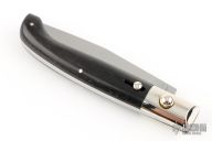 Angelo Campolin Sr. was born in 1923 in Maniago, Italy. He worked on perfecting his knife making skills before WWII and at this time made his first switchblades. After the war, in 1947 he started his company and made 30 stilettos with the marking “Angelo Campolin”. In the 1970’s Angelo’s son Gianni started to work in the company and they were specializing in folding hunting knives and also manual folding stilettos for the Robert Klaas company in Solingen Germany with their Kissing Cranes mark. In 2002 American switchblade collectors Dan Fuller, Brad West, and Tim Zinser were visiting Maniago and enjoying a few glasses of wine in a bar with Angelo Jr. and Gianni. The discussion was about a new name for some knife projects they wanted to pursue. It was Brad West that suggested the tang stamp should be AGA, for Angelo, Gianni, Angelo, thus representing three generations in the knife making business. The Campolins liked it and it stuck. In the beginning it was just a few items, but grew to the point where now there are 12 models and different scale options. The goal has been to offer quality switchblades using the old methods and traditions. Being a collector himself, Angelo Jr. knows what others like. The company headquarters has moved to Austria with production still in the original Maniago shop, as well as the others in Maniago that produce the knives for A.G.A. Campolin.