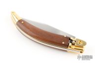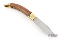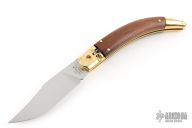 This Diana by AGA Campolin features a mirror polished blade. The handle has mirror polished brass bolsters and lever release, rosewood scales, brass liners, stainless steel backspacer. Nice action, nice lockup and blade seating. Excellent condition. Dated 2021. Comes with a leather sheath.