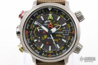 The watch is made with titanium and features a variety of useful features, including Altimeter from -300 to 10,000 meters, with two indicator hands, main and the one located on the subdial 9 hours, electronic compass, charge reserve indicator, shock counteraction function, 3 hands and calendar.