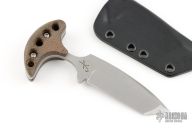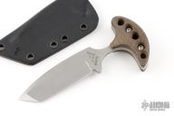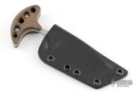 This push dagger by Terry Guinn features a tumble finished tanto blade with false top edge, .184" blade stock and 1.080" blade depth, full tang construction with green canvas micarta scales. Comes with a kydex sheath. Has a couple light scuffs otherwise Excellent condition.