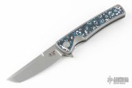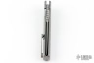 This Shard Integral by Mechforce is a Paul Tony Kilby design. It features a stonewashed tanto blade with false top edge, notched thumbrest and a flipper. The handle has a glass bead blasted integral titanium frame with Frost FatCarbon inlays, tip up titanium clip, stainless lockface insert, lanyard pin in the butt. Nice detent, lockup and blade seating. Comes with original box. New from maker!