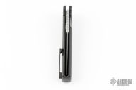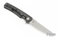 This Shard Integral by Mechforce is a Paul Tony Kilby design. It features a stonewashed tanto blade with false top edge, notched thumbrest and a flipper. The handle has a black PVD integral titanium frame with Black Dune FatCarbon inlays, tip up titanium clip, stainless lockface insert, lanyard pin in the butt. Nice detent, lockup and blade seating. Comes with original box. New from maker!