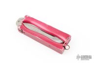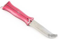 This Balisong features satin finished clip point blade with fullers. The handles are red cast aluminum with brass latch. Scuffs, scratches, oxidation, dings, has been resharpened, fair condition. Rare.