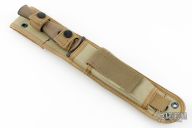 We include an A.G. Russell designed Ballistic Nylon sheath that is made with a kydex liner for safety. A pouch on the front will hold a large folding knife or a sharpening stone, and it is M.O.L.L.E. compatible. We have had to reach outside the U.S.A. for this sheath to get the the quality and delivery we need.