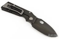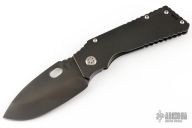 The TFF-1 by Medford Knife and Tool features a black drop point blade with thumbhole and notched thumbrest. The handle has a black titanium frame with a black titanium tip up clip. Comes with a Medford box, hard case, papers, and maker's card. Excellent condition.