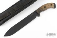 This Zero Tolerance Battle Mistress Ergo by Busse features a black texture finished drop point blade with a false top edge, .258" blade stock and 1.657" blade depth, full tang construction. The handle has textured canvas micarta scales, lanyard hole. Comes with a black nylon sheath. Has some light scratches, otherwise excellent condition.