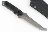 This Fighter by Kiku Matsuda features a clip point blade with a sharpened top-edge, partial serrations and a full tang construction. .158" Blade Stock.  1.138 The handle features black G-10 Scales.  Includes a black kydex sheath and box.  Excellent Condition.