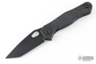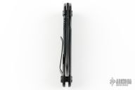 The Quartermaster Roper XL has a tanto dark tumble finished blade with notched thumbrest and thumbhole. The handle has a black G-10 and black tumbled titanium frame with black hardware and a tip up dark tumbled stainless steel clip. Rides on bearings. #026of 300 and dated 06/15. Has some scuffs and scratches, good condition otherwise.