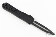 This Manticore-X by Heretic Knives features a two-tone finished double edged blade. The handle has a black aluminum frame with black stainless steel hardware and tip down clip. S/N 02977.  Comes with original box and papers. Excellent Condition.