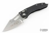 This Stitch Auto by Microtech Knives features a stonewashed blade and false top edge, notched thumb and finger rests. The handle has a black anodized and milled aluminum handle with a bead blasted titanium backspacer and a bead blasted stainless steel clip, tip up carry, lanyard hole at the butt. Comes with original box and papers. S/N of 15886 dated 03/2024. Excellent condition.