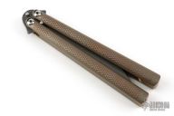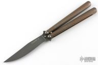 This talisong by Eldon Talley features a Damascus clip point blade. The handle features checkered and anodized handles with chanel construction. Marked Proto on the b-side of the blade. Comes with a zipper case. Excellent condition.