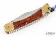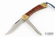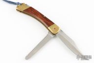 This Puma Game Warden lockback has a brass frame with wood scales. The blades are satin finished with nail nicks. One of the blades is a saw. Has some light scratches, otherwise excellent condition.