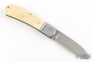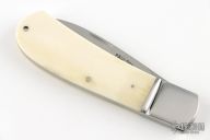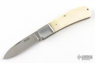 This slipjoint by AW Paulsen features a hand rub satin finished blade with nail nick. The handle has fluted stainless steel bolsters, white bone scales, stainless steel liners and spring. Has half-stop, flush in all positions. Has a couple light scratches, otherwise excellent condition.