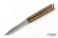 Fred Perrin makes fixed blades and folders of every kind; Forges Damascus steel or uses stock removal techniques. In any case, he always does his own heat treatment and tempering. As far as his background in the martial arts, Fred has spent two years in the French Army Commandos and worked as a bodyguard. He was a national Tae Kwon Do champion and a European full contact stick-fighting champion. He has trained in Kali, and God knows what else. His weapon of choice is the butterfly knife, in which he excels. Aside from being France’s most famous and controversial knife maker and tactical writer, Fred runs a school where he teaches a very unique blend of knife, stick, and empty hand techniques. He is often contracted by France’s elite police units for seminars. He also provides some agencies with custom-made weapons for ballistic testing.