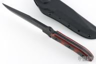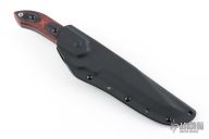 The Marine Heat knife is designed to meet the extreme demands of the Marine Corp. It features a drop point blade with a tactical black coating and full tang construction. The blade is made of 1/4" stock and is 1 3/8" deep. Scales are red/black G10 with black screw pins and a satin lanyard tube. Comes with black Kydex sheath with belt clip. Excellent condition.