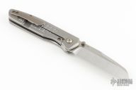 This Bravo 1 Framelock Front Flipper by Enrique Pena features a satin finished blade with a front flipper, dual thumbstuds and notched thumbrest. The handle has a milled titanium frame with a bead blasted titanium backspacer, pivot collars and tip up pocket clip. Comes with original box. Excellent condition.