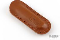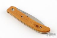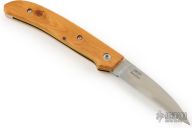 This Slipjoint by Fantoni features a satin finished drop point blade with nail nick. The handle has wood covers over nickel silver liners and steel spring. Includes a brown leather slip sheath. Excellent Condition.