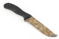 This Mud Mutt by Scrapyard Knives features a drop point digicam coated SR101 blade, .190" blade stock and 1.238" blade depth, hidden tang construction. The handle is black  rubber with lanyard hole. Excellent condition.