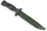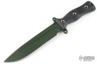 This Team Gemini Light Brigade by Busse Combat Knife Company features a drop point green coated blade with fullers, .260" blade stock and 1.580" blade depth. The handle has black G-10 scales over full tang construction. Exposed tang pommel with lanyard hole. Excellent condition.