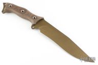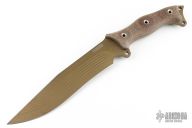 This Battle Grade MOFO features a bronze coated clip point recurve blade with .227" blade stock and 1.707" blade depth, black linen micarta scales with tube pins and full/ extended tang. Excellent condition.