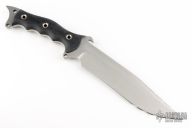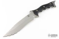 This Flying Mojo Variant features a satin finished clip point recurve blade with sharpened top edge, has partially serrated edges, .250" blade stock and 1.699" blade depth, black G-10 scales with tube pins and full/ extended tang. Knife is in excellent condition.