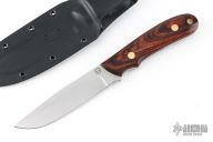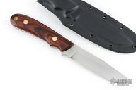 This KS-3 Professional Guides Knife by Dozier Knives has a satin finished blade with .167" blade stock, 1.021" depth, full tang construction. Handle has cocobolo scales, brass pins and lanyard tube pin. Comes with kydex sheath. New from maker.
