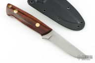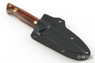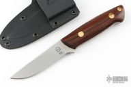 This K-7 Slim Outdoorsman by Dozier Knives features a satin finished blade with .137" blade stock and .844" blade depth, full tang construction. The handle has cocobolo scales with brass pins and lanyard hole. Comes with kydex sheath with belt clip. New from maker.