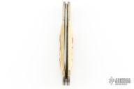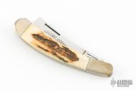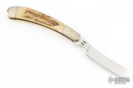 This lockback by Parker has a satin finished blade with nail nick. Nickel silver bolsters, stag covers, nickel silver liners, stainless steel spring. Has some scuffs, scratches, and patina. Great condition otherwise.