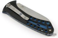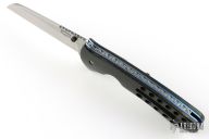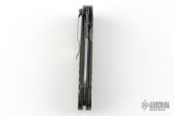 This linerlock folder by Dick Atkinson features a hand rub satin finished blade with single thumbstud and fileworked spine. The handle has micarta scales, anodized titanium liners, tip down stainless steel Spyderco tip down clip, fileworked stainless steel backspacer. Nice lockup. Has some light scratches, excellent condition otherwise.