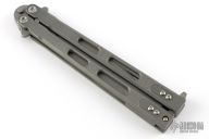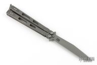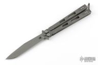 This Nieves Balisong by Hinderer features a working finished blade. The handle has working finished titanium handles with matching filler tabs and T-latch. Comes with original box. Excellent condition.