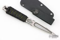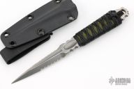 Designed by renowned Master Bladesmith Jason Knight, this modern interpretation of the concept is crafted from tough A2 tool steel. Its one-piece integral construction features a meticulously machined radial texture pattern on both sides of the coffin-shaped handle. Symmetrical grooves at both ends of the handle provide additional grip security and are complemented by an oval lanyard hole. The stout, perfectly symmetrical dagger blade is accented by central fullers on both sides and features two full-length cutting edges.