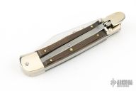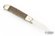This leverlock auto by Hubertus features a tumble polished blade. The handle has nickel silver double bolsters, green canvas micarta scales, nickel silver liners and brass pins. Comes with original box and papers. New condition.